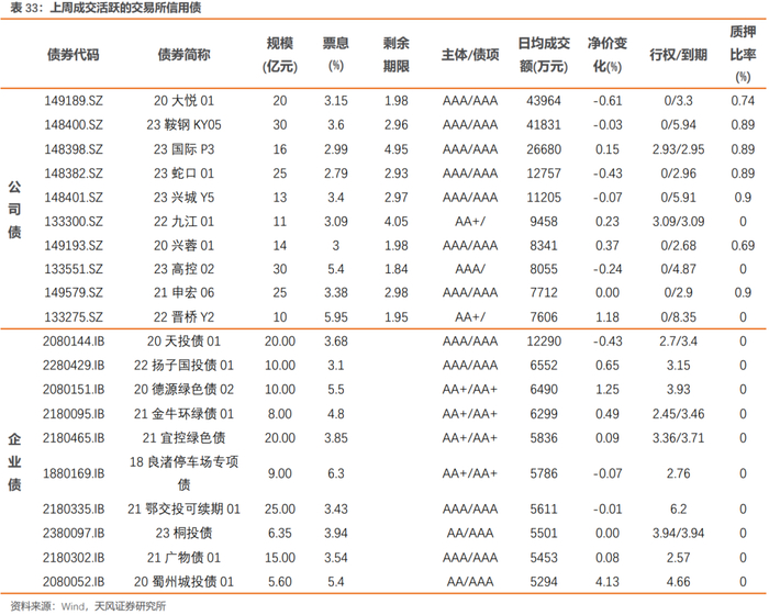 交易所公司债市场和企业债市场交易活跃度上升。公司债成交活跃债券净价上涨数略小于下跌数,企业债成交活跃债券净价上涨数大于下跌数;总的来看公司债净价上涨335只,净价下跌338只;企业债净价上涨211只,净价下跌179只。