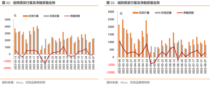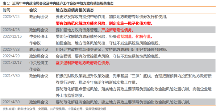政治局会议提出“制定实施一揽子化债方案”提振市场情绪。“遏制增量、化解存量”是2018年隐性债务认定以来,中央对于隐性债务一以贯之的政策,这一点,在历次政治局会议和中央经济工作会议中都有所体现。7月的政治局会议在“化解存量”的表述上,进一步扩展为“制定实施一揽子化债方案”,我们认为这意味着未来可能还将安排一系列政策,包括再融资债等方式化解存量隐性债务。积极的表态,对于市场情绪起到了非常明显的提振作用。