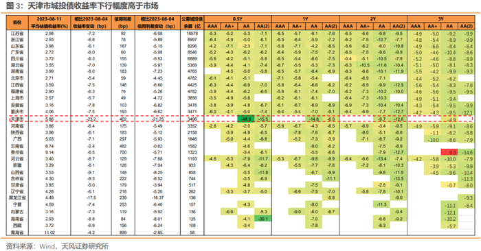 不同机构资金属性不同,并非一定要在天津等区域做博弈。天津融资的改善,将短期提振机构对城投债整体的风险偏好,东部偏弱地区、中部省市区域同样也将有望享受到融资压力改善带来的好处。