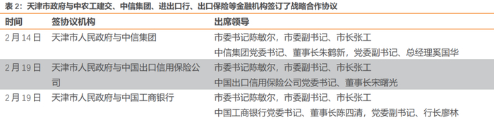 从年初以来,天津市领导班子与中农工建交、中信集团、进出口行、出口保险公司等签订了一系列的战略合作协议,也有力提振了市场信心。