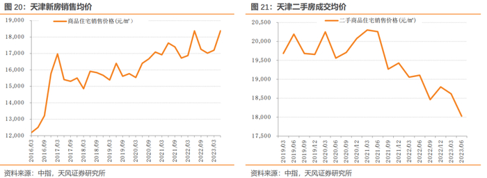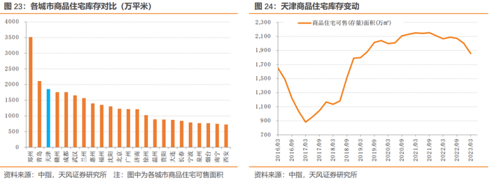 但库存压力仍不小。截止一季度末,天津可售住宅面积1858万平,在全国所有城市中靠前。尽管相比高位已经有下降,但整体库存压力仍不小。