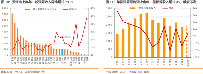 财政收入大幅好转。上半年,天津市一般公共预算收入实现1076.2亿元,同比增长23.9%,年初预算报告预计全年一般预算增长4%达到1921亿元,预计难度不高。