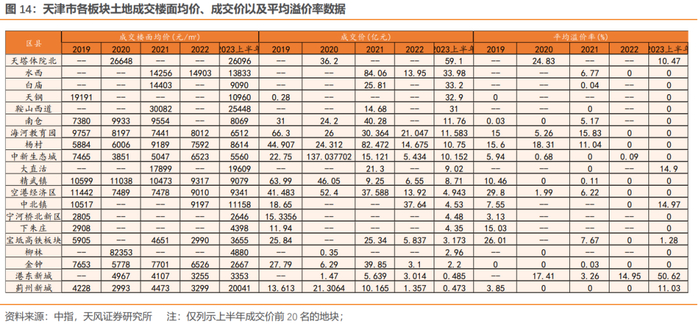 我们整理了上半年天津市土地出让规模较大的板块,进行数据对比,可以看出,上半年出让的土地都属于质量相对较好的核心地块。