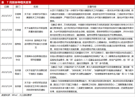 《关于促进民营经济发展壮大的意见》将检验债市在创新增信方式方面的能力与示范效果,科技创新公司债券融资需求将提升。目前我国经济内需不足,扩内需是拉动经济增长的必要一环。民营经济改善经营环境将有助于就业增收,是扩内需的有效途径。在此大形势下,7月19日,中共中央国务院发布《关于促进民营经济发展壮大的意见》(下称《意见》),提出支持民营中小微企业在债券市场融资,鼓励民营企业发行科技创新公司债券,推动民营企业债券融资专项支持计划扩大覆盖面、提升增信力度,可以看出下一步民营企业债券融资的突破点为增信和科创。《意见》与6月30日交易商协会发布的《关于进一步提升债务融资工具融资服务质效有关事项的通知》(下称《通知》)前后呼应,《通知》提出用好民营企业债券融资支持工具,积极为民营企业发债融资提供增信,可见监管政策的一致性和落地性。另外《意见》支持并保护民营企业创新,强调培育专精特新民营中小企业,旨在激发创新动力、提升创新能力,让有潜力的企业家有底气通过科技创新将实业做大做强。民营企业科技创新形成广泛共识将更多需要科技创新公司债券提供融资支持,有利于债市创新和扩容。
