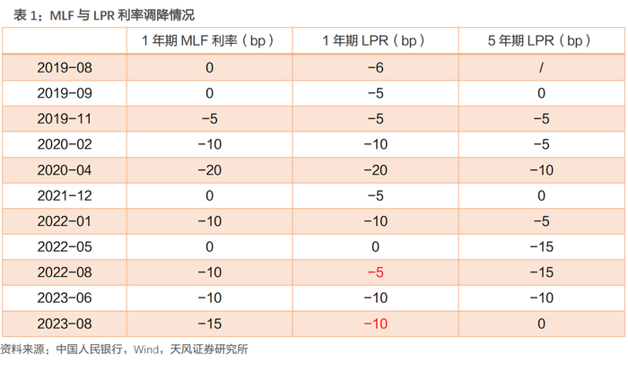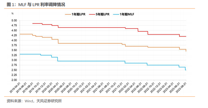 观察历史,2019年LPR机制改革以来,历次MLF利率调降后,1年期和5年期LPR通常都会跟随进行调降,只是调降幅度有差别。