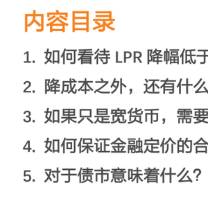 1. 如何看待LPR降幅低于预期?
