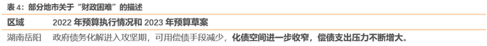 例如,江苏、青海、贵州、湖南明确在近期公开的财政预决算报告和会议中提出要积极扩大建制县区试点;在2023年初公开的《2022年预算执行情况和2023 年预算草案》和《2023年政府工作报告》中则有多个地市和区县提出,如四川宜宾市、江苏泰州市海陵区、辽宁盘锦市、辽宁营口市、山西晋中市祁县、安徽安庆市、贵州多市等;计划单列市及其他省市则暂未明确提及隐债置换。