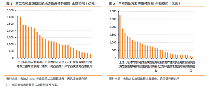 此外,关于市场关注的特殊再融资债,根据多省发布的2023年省级第二次预算调整,测算各地限额以内空间,各地空间似乎都有所增长。