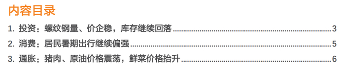 1.投资:螺纹钢量、价企稳,库存继续回落