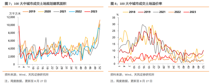 土地溢价率:截至8月27日,100大中城市成交土地溢价率为1.07%,环比前一周-0.67pct。