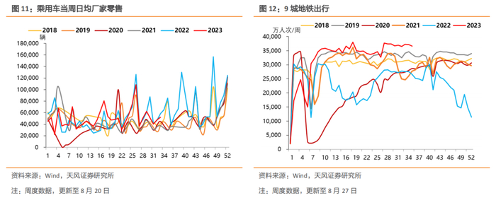 本周周度执飞航班、居民地铁出行人次继续强于季节性,汽车销售小幅上涨。
