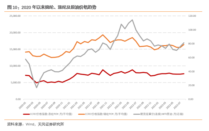 上游,由于上述气囊丝系以石油为主要原料经化学合成制得,其价格主要受原油价格波动的影响。2020年5月以来,国际原油价格持续上涨,特别是2022年2月俄乌冲突爆发,原油价格上涨至近年高点,至2022年下半年,随着市场预期稳定,国际原油价格小幅回落。伴随原油价格波动趋势,锦纶和涤纶价格2020年处于相对低位,2021年开始价格上涨幅度较大,2022年下半年及2023年上半年呈小幅下降趋势。