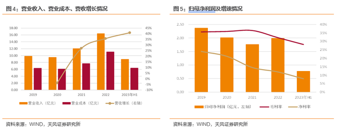 2023年H1公司营业收入8.92亿元,较去年同期同比增长40.94%;营业成本6.41亿元,较去年同期同比增长46.94%;归母净利润0.77亿元,较去年同期同比增长12.48%。其中,公司Q2营业收入4.72亿元,较去年同期同比增长63.49%;归母净利润0.48亿元,较去年同期同比增长496.53%。