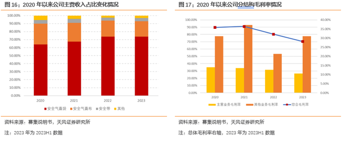 产品线覆盖汽车安全气囊布、安全气囊袋以及安全带等被动安全系统部件。公司是国内较早进入安全气囊布行业的公司之一,作为国内主流汽车被动安全系统部件提供商中少数本土企业之一,产品主要应用在德系、美系、日系和本土品牌整车厂商的车辆上,在安全气囊布、安全气囊袋等领域的市场竞争中占据了一定的优势地位,国内市场占有率位居前列。