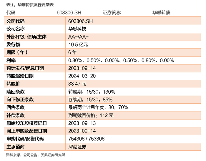 1.华懋转债要素表