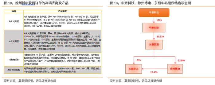 华懋科技通过其子公司东阳凯阳投资光刻胶龙头徐州博康。徐州博康从事光刻材料领域中的中高端化学品业务,在单体+树脂+成品+配套试剂全面发力,实现光刻胶全产业链覆盖。徐州博康是国内定位于中高端光刻胶生产销售的公司,2022年以来有多款高端光刻胶产品分别获得了国内12寸晶圆厂的相关订单。