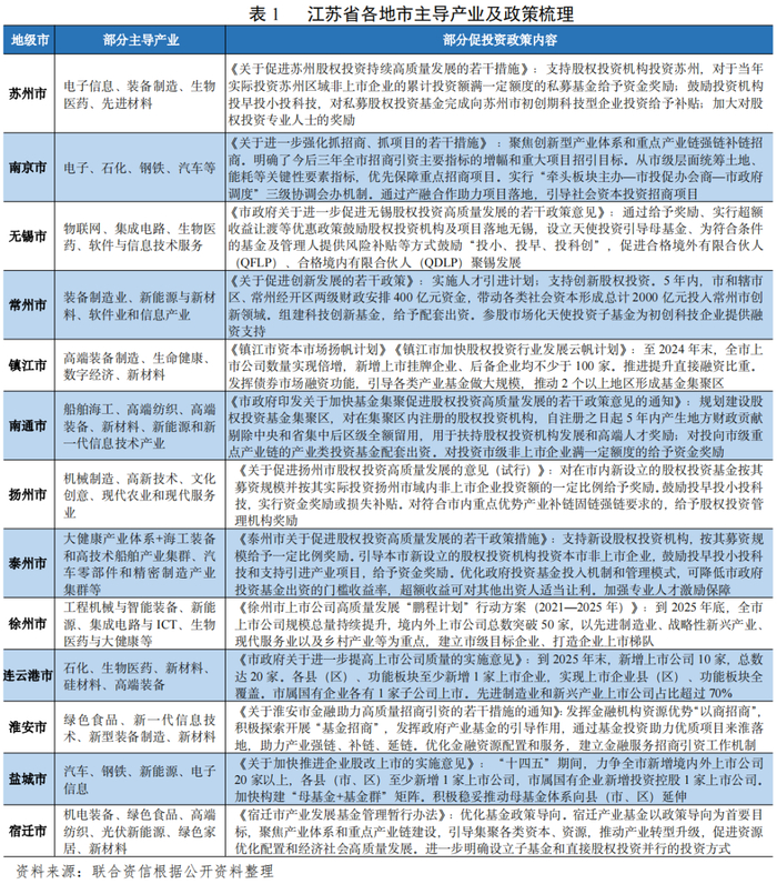 三,江苏省各地级市产业发展及股权投资概况