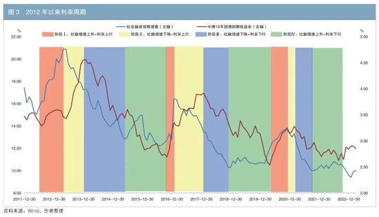 根据利率周期模型的划分依据及四个阶段的发展顺序,基于指标走势,笔者将2012以来的各个阶段进行划分(见图3),具体划分结果如表1所示。