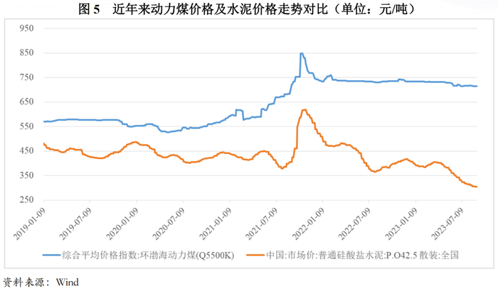 2023年以来,房地产开发投资呈负增长,基建投资虽增幅明显但对水泥需求支撑不足,水泥需求端压力较大;供需失衡致使行业竞争加剧,成本难以向下游传导,水泥价格下降明显,加之煤炭价格仍高位震荡,水泥行业效益持续下降。
