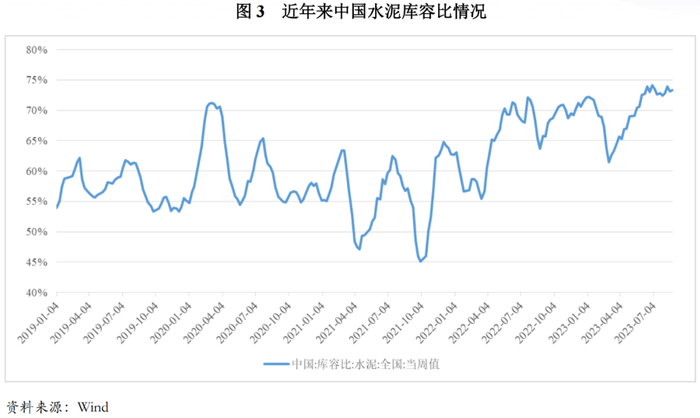 需求端来看,2023年以来,房地产行业投资规模继续下降,且降幅扩大,对水泥行业需求影响较大,基建投资规模仍保持净增长,但整体来看,水泥的需求端延续疲软态势。后期展望看,房地产行业“利好政策”密集型出台,地产行业景气度有望边际改善,房企的现金流压力将有所释放,有助于拉动行业投资增长;但最终的改善程度仍需关注政策的持续性及释放效果。