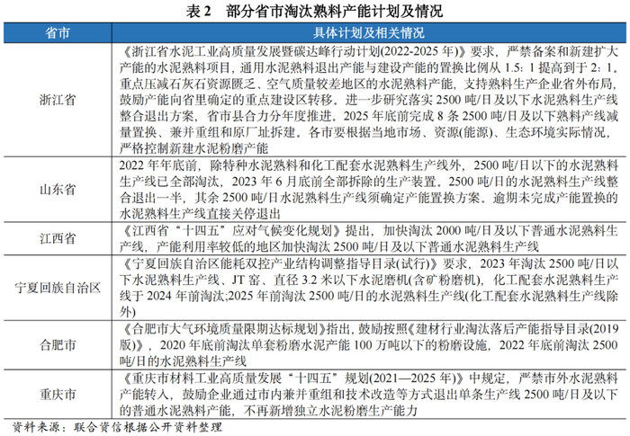 在“双碳”+“双控”政策下,高耗能行业转型压力加大,水泥企业淘汰落后产能、剥离低效资产及优化资源配置的需求迫切,浙江、山东、江西、宁夏、重庆等多地都有明确规定,要加快淘汰2500t/d及以下熟料产能。以山东省为例,2022年年底前,除特种水泥熟料和化工配套水泥熟料生产线外,2500吨/日以下的水泥熟料生产线已全部淘汰,2023年6月底前全部拆除的生产装置。2500吨/日的水泥熟料生产线整合退出一半,其余2500吨/日水泥熟料生产线须确定产能置换方案。逾期未完成产能置换的水泥熟料生产线直接关停退出。行业内企业并购重组频繁,行业集中度将进一步提升。