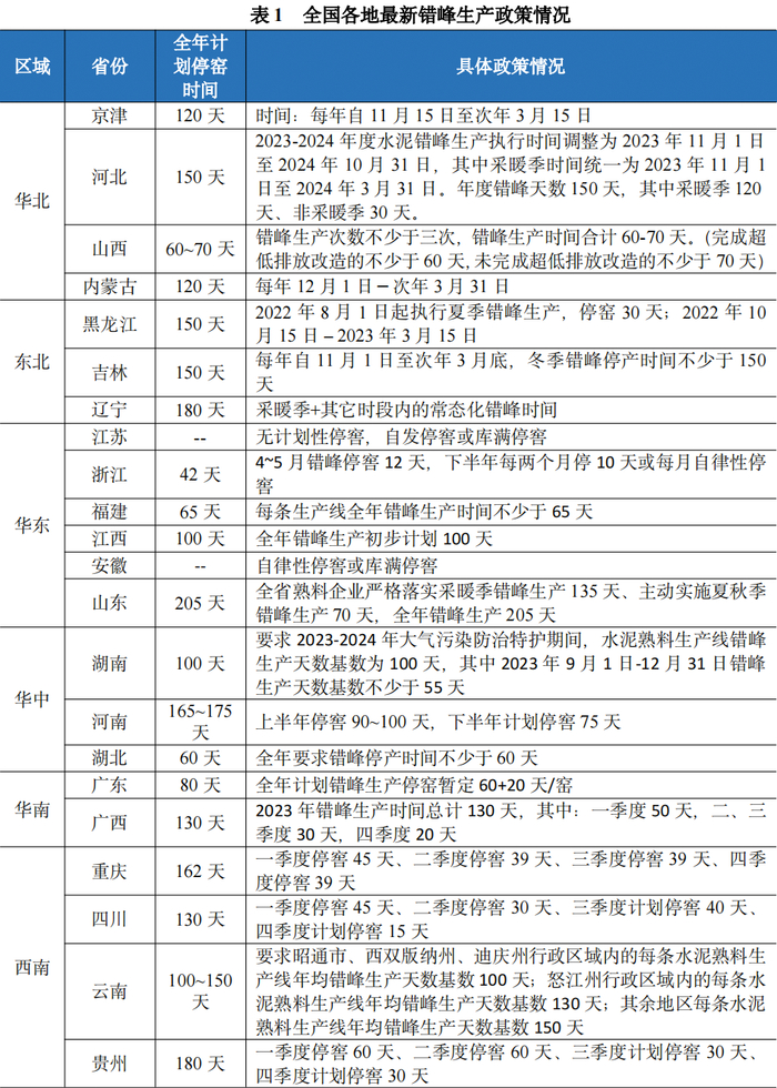 关键词1:错峰生产常态化、部分地区错峰停窑时间延长
