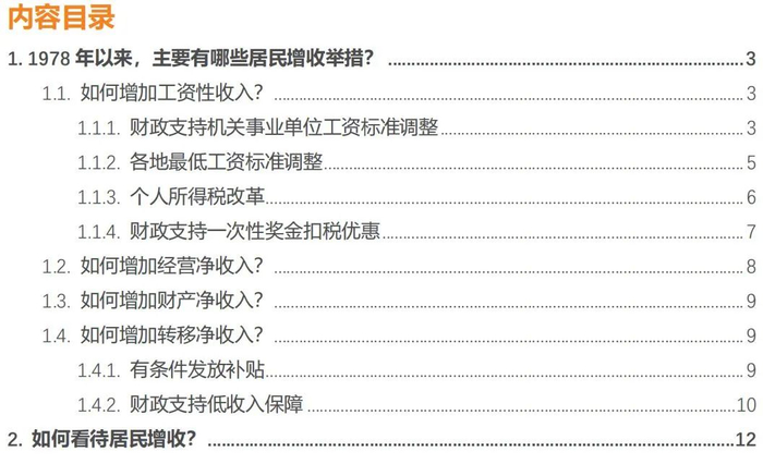 1. 1978年以来,主要有哪些居民增收举措?