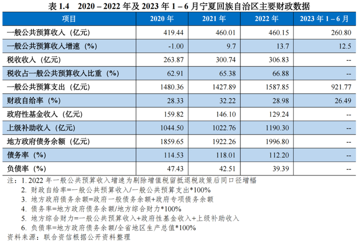 [6]固原市2022年债务数据出自固原市2022年一般公共预算收入执行情况。