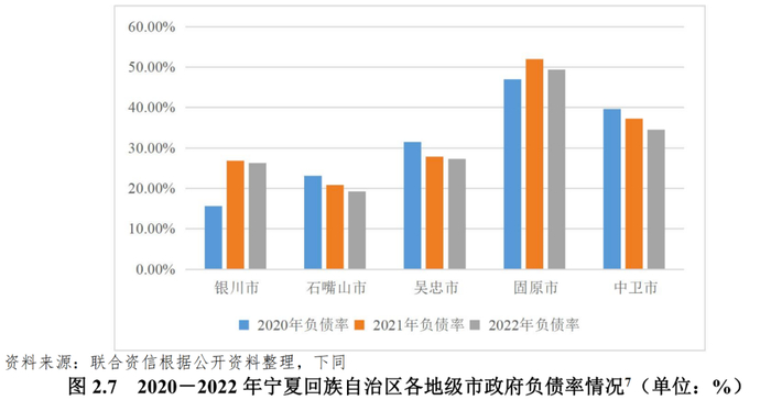[7]联合资信未在官方途径查询到中卫市全市上级补助相关数据,故此处债务率统计仅涉及银川市、石嘴山市、吴忠市和固原市。