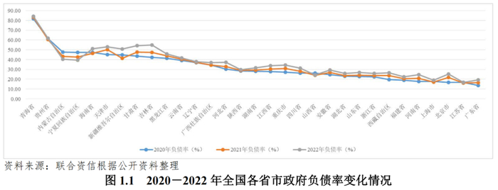 2020―2022年底,石嘴山市债务率波动下降,银川市、吴忠市和固原市的债务率均呈增长态势。2022年,受上级补助收入增长影响,银川市和石嘴山市政府债务率较2021年分别下降32.39个百分点和18.23个百分点,吴忠市和固原市政府债务率维持增长。整体看,除银川市外(145.07%),宁夏其他地级市政府债务率相对较轻。
