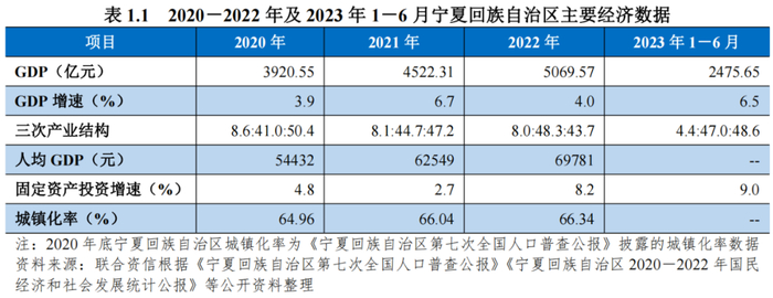 宁夏回族自治区(以下简称“宁夏”或“自治区”)地处中国西北部,经济总量在全国相对靠后。2020-2022年,宁夏经济总量持续增长,其中2022年增速有所放缓,但高于全国水平。2020-2022年,宁夏一般公共预算收入持续增长,但税收比重偏低,政府性基金收入对财政贡献程度有限,财政对上级补助依赖程度高。宁夏政府债务规模不大,2022年政府债务率位居全国第8名,地方政府综合财力对政府债务覆盖程度较高。2023年上半年,宁夏经济总量和一般公共预算收入同比维持增长。