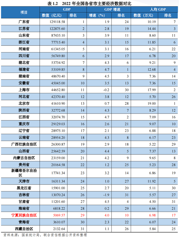 一、宁夏回族自治区经济及财政实力