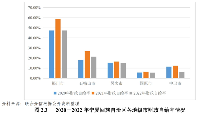 [4]上级补助收入=返还性收入+一般性转移支付收入+专项转移支付收入+政府性基金收入上级补助;联合资信未在官方途径查询到中卫市全市上级补助相关数据,故此处上级补助分析仅涉及银川市、石嘴山市、吴忠市和固原市;吴忠市全市上级补助数据出自2020-2022年财政预算执行情况。