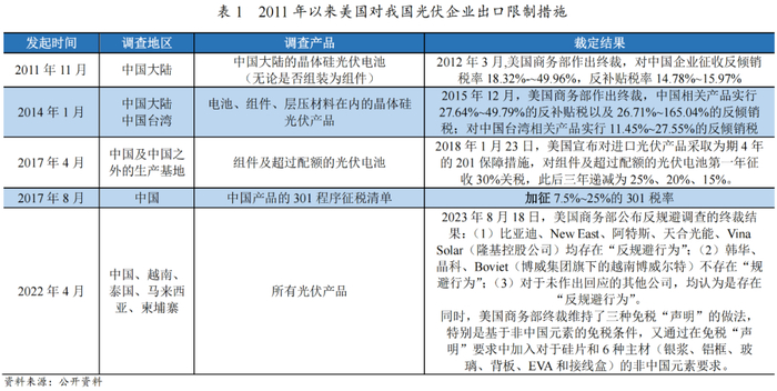自2011年美国对我国光伏产品发起第一轮“双反”调查以来,欧盟、加拿大等国家和地区也陆续对我国光伏产品开启相关调查。同时,各国对我国光伏产品出口贸易限制层层加码,我国光伏制造企业的生产经营面临严峻挑战。