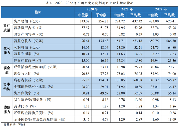 从财务指标来看,2020-2022年末,我国光伏制造企业资产规模保持增长趋势,截至2022年底,我国光伏制造企业已具备明显的规模优势,在全球光伏产业居主导地位。2020-2022年,随着我国光伏市场需求的增加,我国光伏制造企业对外出口依赖度明显降低,“双反”调查等贸易限制对我国光伏制造企业生产经营的影响明显减弱,我国光伏制造企业营业收入和利润总额均不断增长,但由于上游原材料价格上涨,营业利润率有所下降。同期末,随着产能规模的不断扩大,我国光伏制造企业债务负担有所加重,偿债指标波动较大,但整体表现良好。2020年以来,我国光伏制造产业发债规模逐年扩大,同时我国不断出台各项政策保障光伏产业健康有序发展,整体融资环境较为良好。考虑到光伏制造企业发行债券类型多为可转换公司债券,未来转股可能性较高,整体偿债压力可控,我国光伏制造产业整体信用风险可控。