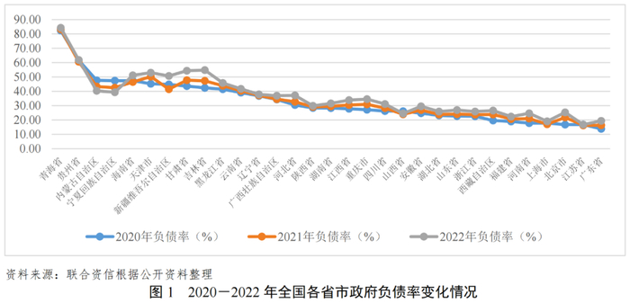 2020-2022年,青海省政府债务余额规模持续增长,2022年底为3044.28亿元。2020-2022年,青海省政府负债率分别为82.34%、83.28%和84.33%,持续上升。2022年,青海省政府负债率和债务率均在全国各省(自治区、直辖市)中均处于较高水平,债务压力大。