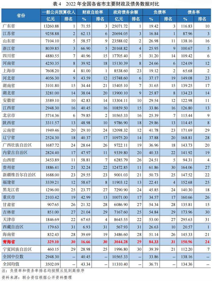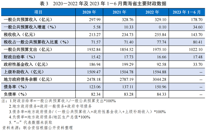 2.青海省财政实力及政府债务情况
