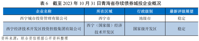 青海省存续发债城投企业少,有存续债券的企业主体信用级别全部为AA+。