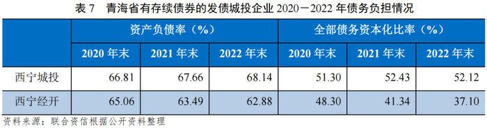 [2]由于可获取2022年财务数据的青海省城投发债企业仅包括西宁城投和西宁经开,本部分采用上述两家作为样本进行分析。