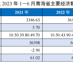 2023年1-6月,青海省地区生产总值1798.3亿元,以不变价格计算,同比增长6.8%;其中,第一产业增加值57.1亿元,增长4.2%;第二产业增加值795.8亿元,增长6.5%;第三产业增加值945.5亿元,增长7.2%。三次产业结构为3.2∶44.2∶52.6。2023年上半年,青海省整体经济增速高于全国增速。