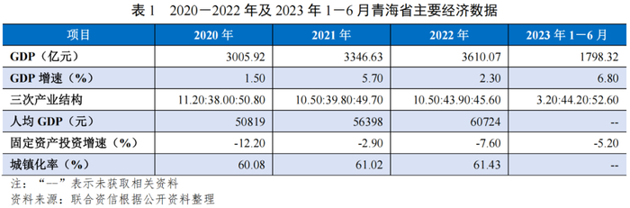 青海省位于中国西部,经济发展相对滞后。2020-2022年,青海省经济持续增长,增速有所波动,整体产业结构保持稳定。2022年,青海省GDP总量居全国第30位,增速低于全国水平,规模以上工业增加值增速有所提高,固定资产投资增速同比下降。2023年上半年,青海省整体经济增速高于全国增速。2020-2022年,青海省一般公共预算收入持续增长,一般公共预算收入增速有所波动。2022年,青海省一般公共预算收入全国排名第30位,其中税收占比较上年同期有所提高,财政自给能力弱,财政收支平衡主要依赖于上级补助收入。2020-2022年,青海省政府债务余额规模持续增长,政府负债率和债务率均在全国处于较高水平。