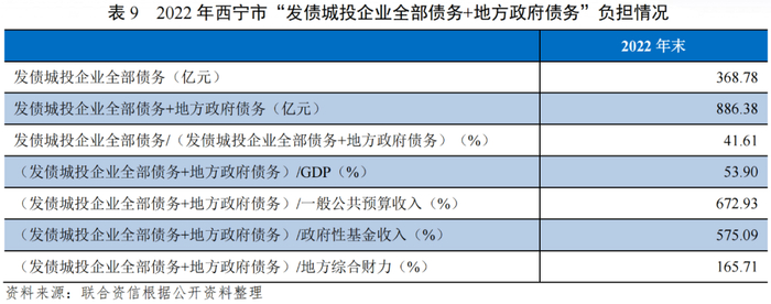 综合来看,截至2022年底,西宁市债务负担一般,一般预算收入对“发债城投企业全部债务+地方政府债务”支持保障能力较强,政府性基金收入对“发债城投企业全部债务+地方政府债务”支持保障能力较强,整体地方综合财力对“发债城投企业全部债务+地方政府债务”支持保障能力较强。