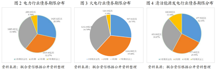 从发债期限上来看,电力行业投资周期偏长,因此整体行业发债期限偏长期。但相较于火电行业,清洁能源发电项目建设周期较短,导致其发行的短期债券占比高于火电企业。