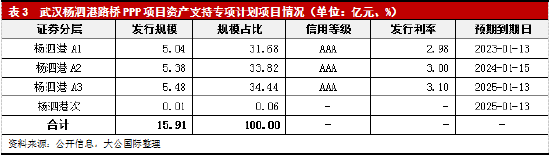 2022年3月31日,由中建武汉杨泗港路桥建设运营有限公司作为原始权益人的首单无主体增信卖断型PPP-ABS同时也是市场首单无主体增信中央企业项目“武汉杨泗港路桥PPP项目资产支持专项计划”在上交所成功发行。本单产品的基础资产为“武汉市杨泗港快速通道青菱段(八坦立交~芦湾湖立交西)工程PPP项目”的政府付费应收账款。