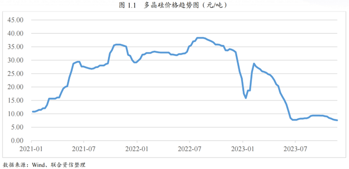 从多晶硅价格走势来看,2023年初,多晶硅价格止跌并进入快速上升通道,截至2023年2月8日上涨至最高峰28.76美元/吨。随后,受前期产能快速释放等因素影响,多晶硅价格急速下降至7.72美元/吨。进入2023年7月后,多晶硅价格有所企稳。随着新增产能大规模释放,预计2024年多晶硅价格或将继续下行。