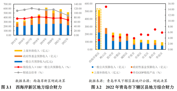 西海岸新区地方综合财力在全市领先,对土地财政依赖程度较高。受土地及房地产市场低迷影响,叠加减税降费政策,西海岸新区整体财力承压。