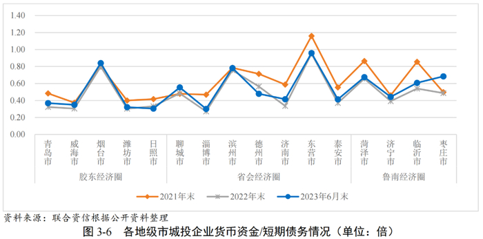 2023年6月末,各地级市发债城投企业短期偿债指标虽有所好转,但潍坊市、淄博市和日照市发债城投企业仍存在较大的短期偿债压力,且潍坊市2024年到期债券规模较大。