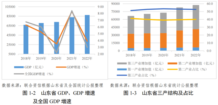 山东省交通发达,区位及港口优势明显。2022年经济增速虽有所放缓,但总量稳居全国第三。山东省新旧动能转换持续推进,相关政策利好区域发展,推动产业结构进一步优化。