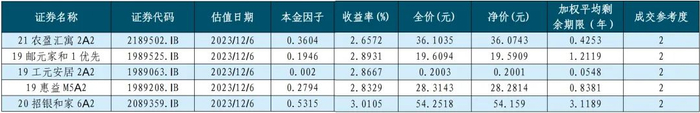 中债资信ABS优先级证券估值结果(2023年12月06日)
