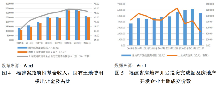受房地产行业深度调整影响,2022年及2023年上半年政府性基金收入均有所下降。福建省国有土地使用权出让收入占政府性基金收入比重基本超九成。2022年,福建省政府性基金收入2631.32亿元,较上年下降21.3%,主要系受房地产市场低迷影响土地出让金收入下降所致。2023年1-6月,福建省实现政府性基金收入798.69亿元,较上年同期下降35.2%。
